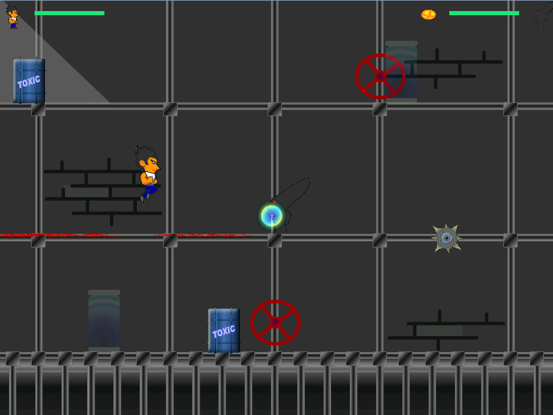 Fighting style dodge ball but with plataform stages and bombs, supershoots, very bloody...etc